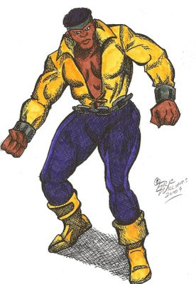 I did this Luke Cage fan art for one of my new GhettoManga Quarterly magazine subscribers, and about halfway through completing this, decided that the next issue (winter 2010) would be a Luke Cage tribute issue (i.e. the "Sweet Christmas special"). If you want to submit some Luke Cage art, go here for details [link]anyways I posted the pencils and inks in the Daily Sketch archive in my gallery, and I finally finished the color on it. The pencils were done on computer paper, the inks on some cheap cardstock the wife bought me (♥) and the colors were done in photoshop.