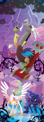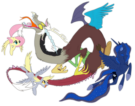 Faved for Discord's epic expression and TEETH. But seriously, this is very cool. Being that Dizzy there is so energetic and spastic I can imagine being in stone is probably far worse for him than they portray it in the show, hence his extreme anger at being defeated in such a fashion.