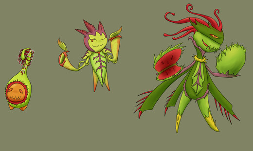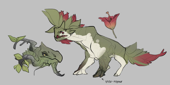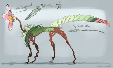 I am creating these characters for an RPG idea I have. All the plants on the planet are the living and moving creatures while all the animals grow more like plants. It is a fun idea to design for and I hope to put up more soon.Painted in Sai