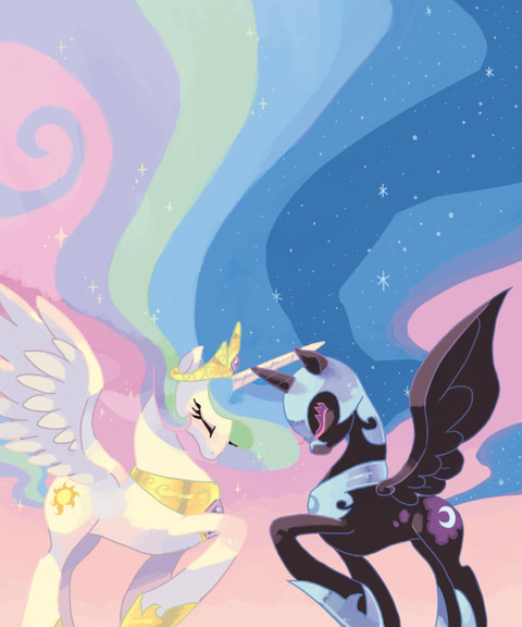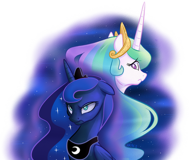 This is amazing. I don't even have the words. I love the glowing eyes and their armor. I see Celestia and Luna as those willing to stand up for their subjects no matter what.
