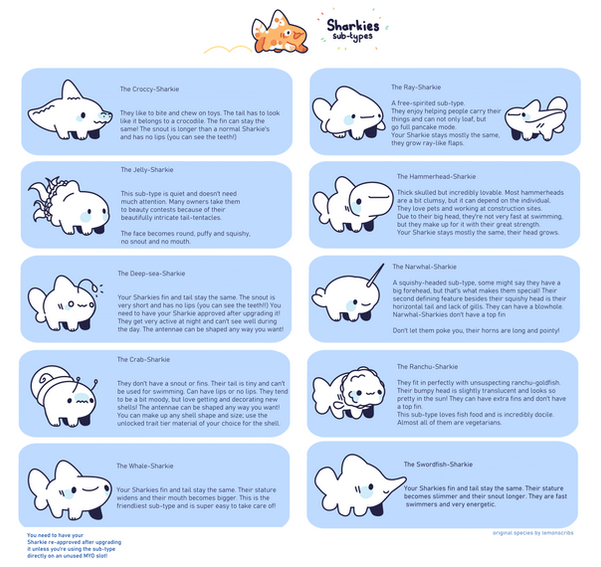 Sharkpups are a regulated species. Please let me know if you make one. You can make a common or uncommon but not a rare. I have bases for sale if you would like to use one to make your character.Bases are on my etsyΒ www.etsy.com/shop/HoneyBeeDownβ¦