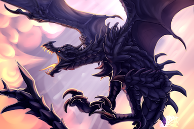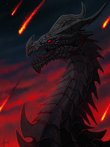 That is badass man! I really love badass dragons! Love how obscured he looks, yet you could see some subtle features through the gentle highlights. And that glaring red eye on all that black just makes it even more menacing. Really awesome job!