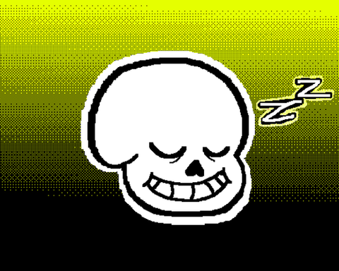 3AM... nearly 4AM. I didn't know what to do, then I remembered I had kept a Pumpkieless version of a frame with Sans sleeping behind his post, so I thought I'd just post it.In fact, I know how my accentuated interest for Undertale is destined to die sooner or later, so if I can just contribute a minimum and keep a trace of it. x') Then in the future I could just tell someone: "So here was my Undertale time and all the fanworks made with it..."