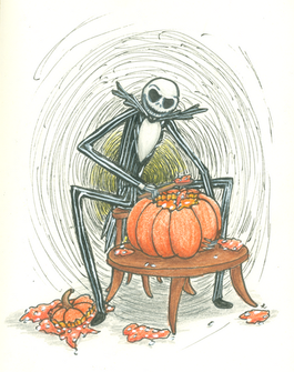 Jack Skellington's features? Theorically speaking. This is no longer new that I watched The Nightmare Before Christmas, on May 28th 2015 at about 8PM-9PM, a few months after imagining out of nowhere a Jack-o'-lantern face, that would be the ghosty Pumpkie of today. (I know... the date is... pretty much... not-at-all an exaggerating detail I'm adding there)