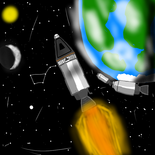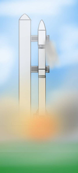 Something I threw together in 15 minutesAfter the space station multi docking sector A-1 Docked the second rocket took off caring The Habitation module and the base for the gravity ring. A photo from a drone was able to be caught of the two boosters separating from the main rocket.