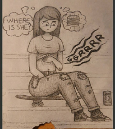 Amie's starting to look a little full!...but she hasn't even touched her food!
