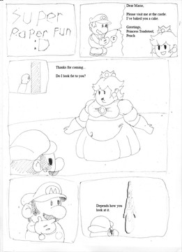 A mysterious paint has been splotched down into the Paper Mushroom Kingdom...Those who touch it turn into fatties! (Is 'fatties' the proper scientific term?)