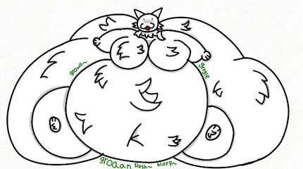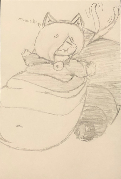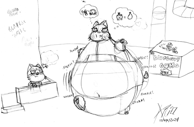 after losing her shop to an infestation of empty temmie flake boxes, she is left with no choice but to... be moved a few feet away from her store and fed moreand get belly pets!