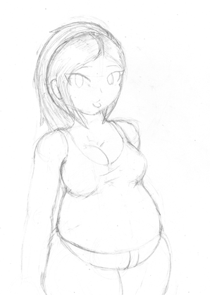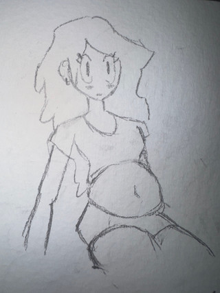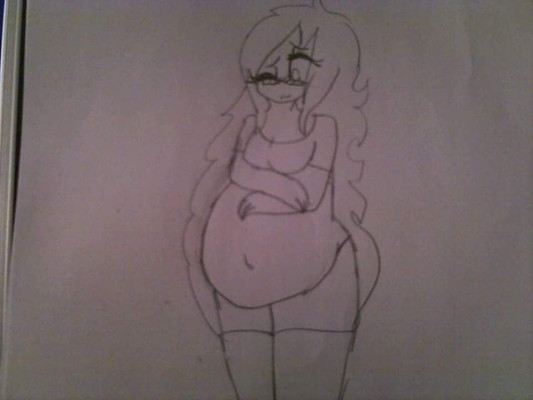 Amie casually assumes various poses while trying to get comfyoften times, she's totally oblivious to any changes that happen her body (including round, heavy ones)