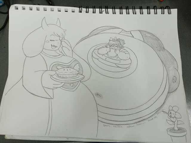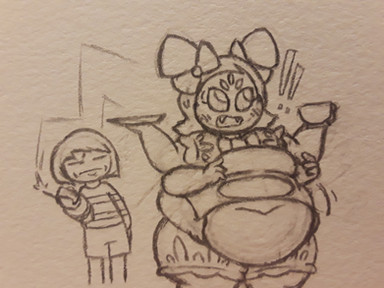 what if toriel's pie was too much for regular monsters and made em fatter....muffet is a (totally) willing taste tester!