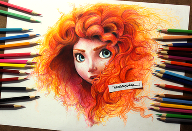 This is my Merida Version ..I chose to use colors in the hair instead of being traditional, I used colored ballpoint pens and this piece took me more than two days to finish! but it was absolutely fun !!!You can always visit my Instagram gallery where I'm posting my artworks for more than 33K awesome folllowers!