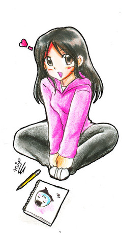 Wow what a random background!And as usual I doodle in math. And this is a doodle i did of me being bored as usual in math. It's not that I dont pay attention, but when we have warm ups are are working on work sheets, I'm normally done quickly. And in an honors class its rare to not being doing work. But hey! No one has yelled at my doodling yet!
