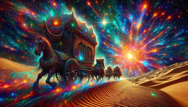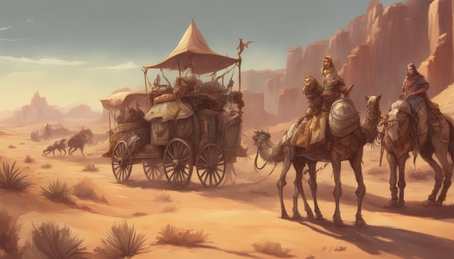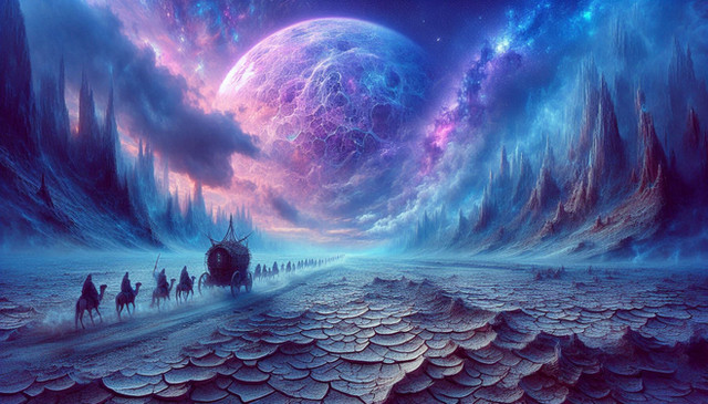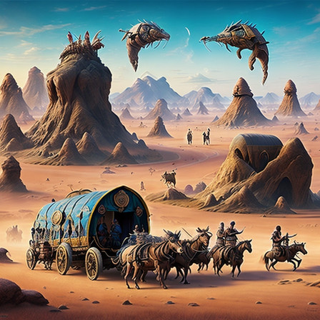 #adoptable #caravan #desert #dramatic #dune #dunes #horses #inhospitable #jagged #landscape #peaks #sky #swirling #travel #wagon #aiart #adoptableopen