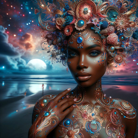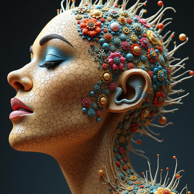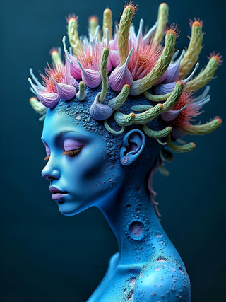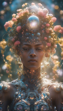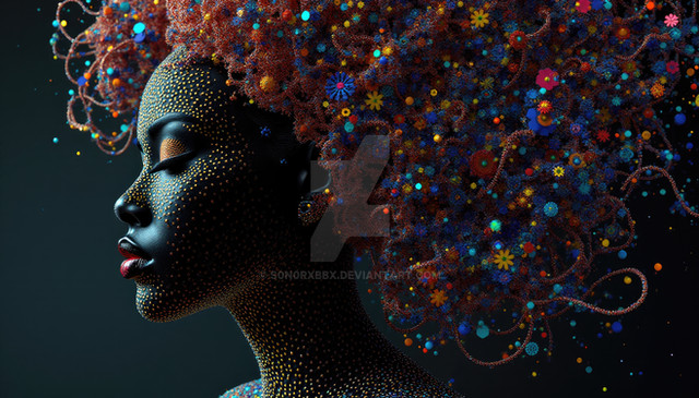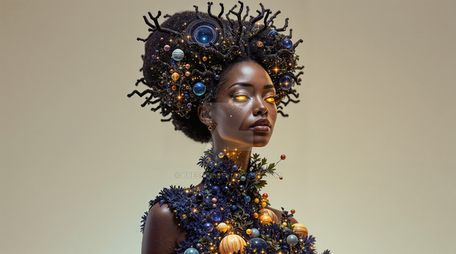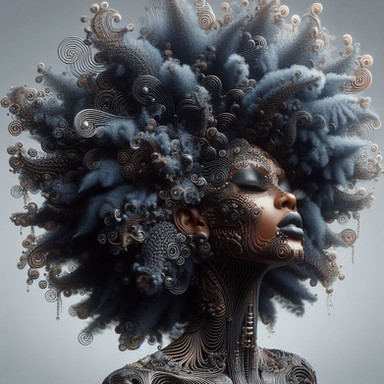 #biopunk #darkbackground #detailed #digitalart #dynamic #evolution #excellence #female #futuristic #growth #headress #intricate #movement #ornamentation #portrait #profile #resilience #serene #shells #surreal #textures #transformation #visionary #afrofuturism #aiart #naturalmotif