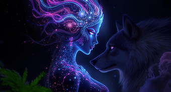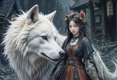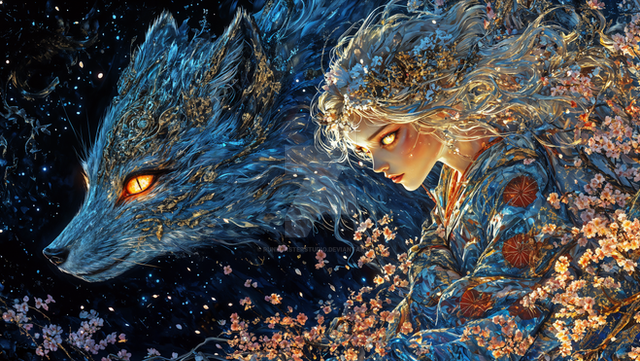 #forest #surreal #animal #beauty #portrait #fantasyart #digitalart #adopt #adoptable #blooming #coexistence #elegance #flowers #natural #peaceful #serene #tranquility #wolf #woman #aiart
