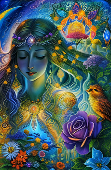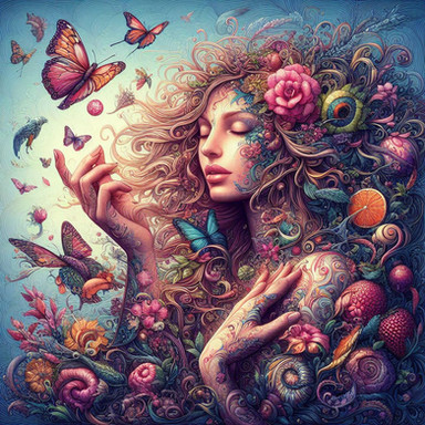 #beauty #digitalart #surreal #floral #fantasyart #adoptable #birds #butterflies #colorful #dreamy #flowers #intricate #nature #vibrant #woman #aiart
