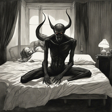 The sleep paralysis demon appeared a few minutes later. It was standing at the foot of Sarah's bed, its eyes glowing red and its fangs bared.