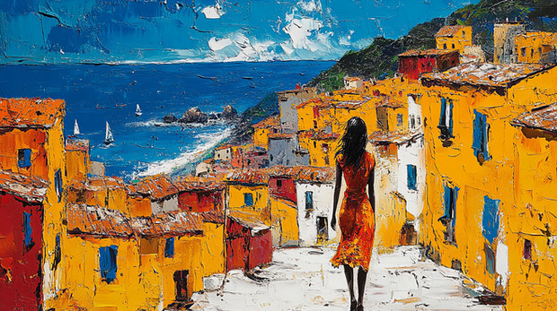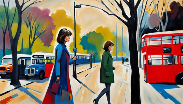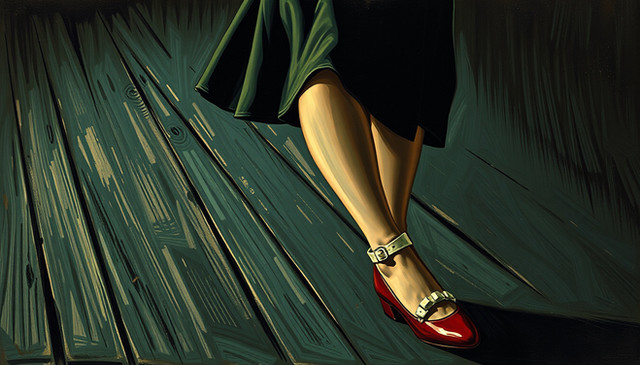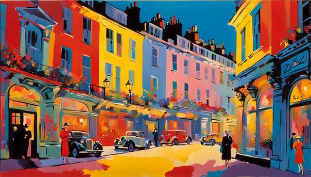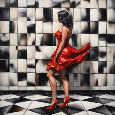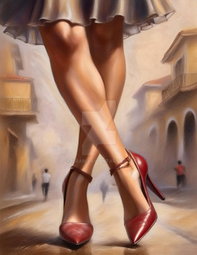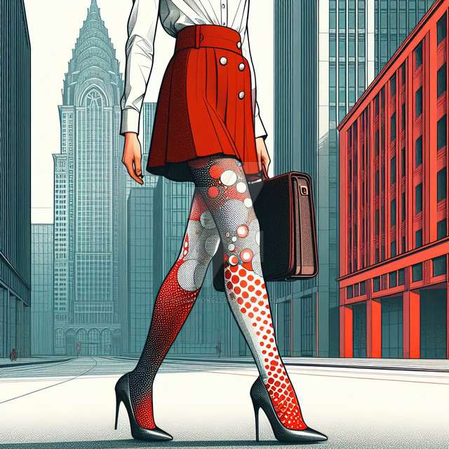 #cityscape #digitalart #abstract #adoptable #boots #buildings #heel #pedestrians #pointillism #polka #popart #reddress #storefronts #umbrellas #urban #vibrant #walking #highheeledboots #aiart