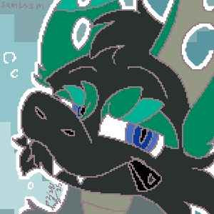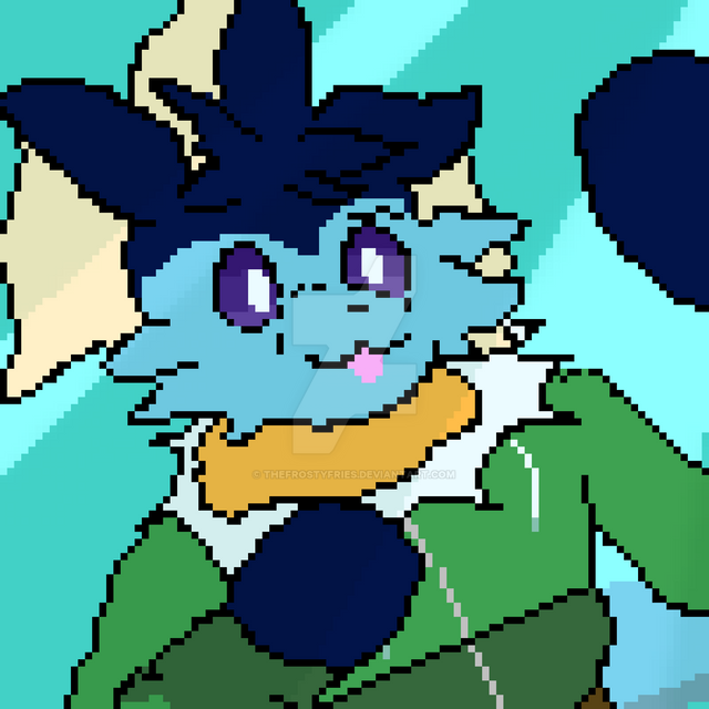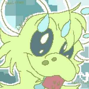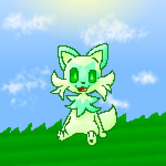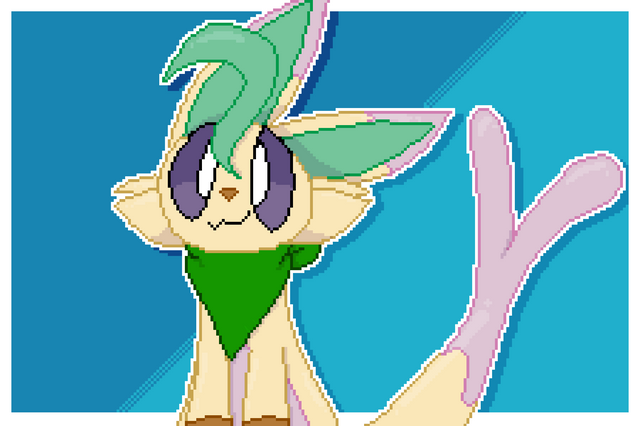 Pixel art of one of my new OCs, Meelo! He's a Vaporeon, Celebi, Mew, and Lucario mix!