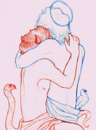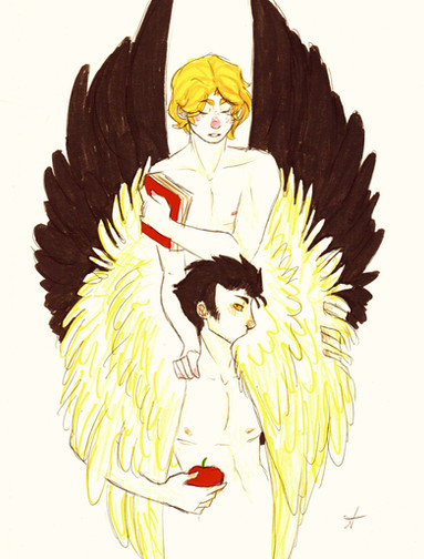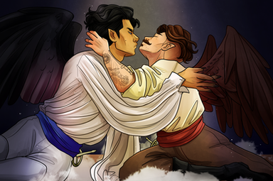 The coloring and poses look amaaazing! I love the way his wings came out. Also, awww....