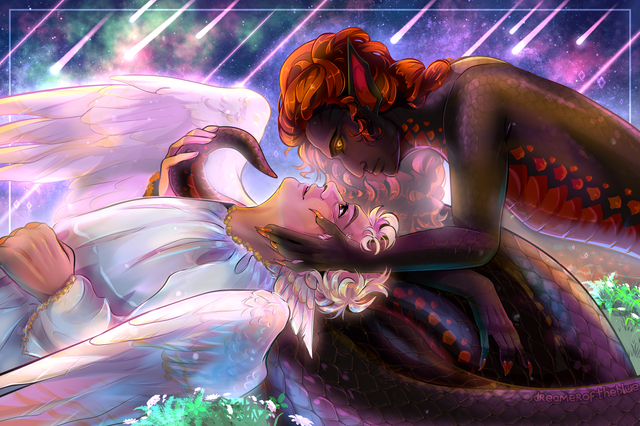 HOLY SHITI THIS IS JUST SO BEAUTIFU LI LOVE THE COLORS AND HIS WINGS AND THE POSE IS JUST/ ???? // LIKE MAKES ME THINK OF THOSE RENAISSANCE PAINTINGS THIS IS LITERALLY