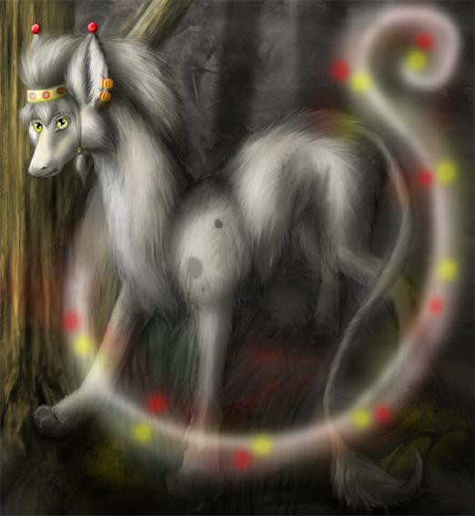 Каменная скала.. Камень волшебен, но его белизна всё таки отвлекает от персонажа - чуть приглушить, оттенить и дать ему слиться с драконом...