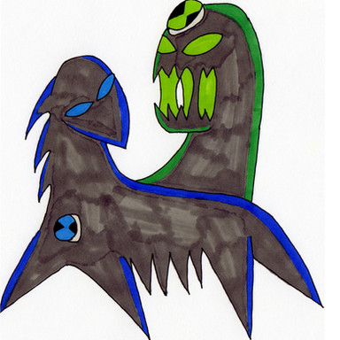 Equus Slimare a high endurance aliens from a desert planet Saha. Merchant in Saha need to use them to travel. This was because they can withstand high temperature. They don't need much water just like human's camel. Slowride's skin are made of 3 different layer water on the outer most, slime on the middle layer and acidic slime on the inner layer. The water on his outer most layer help cooling him to withstand heat. Slowride's eye can see in a great distance. They can even spotted shelter in the middle of sand storm. Slowride can feel underground to sense danger, this is another feature that merchant choose Equus Slimare. Slowride can use his slime to strike enemy just like Goop. He can also split acid slime from every part of his body to fight against enemy.