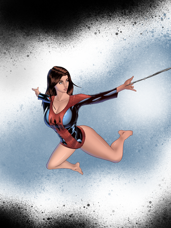 WOW that pose is fantastic. I would keep experimenting with color and shading, I agree the colors are a bit muted but I just prefer bright colors so I guess its a taste thing? Could use a bit more contrast but im just being nitpicky. Keep it up!