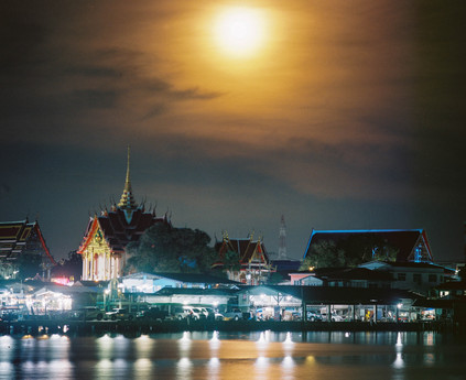 I went to Bang Pu with my sister, and it was happened to have some celebration at the temple. This photo took from across the river.Prah Samut Chedi Temple, Samut Prakan, Thailand.