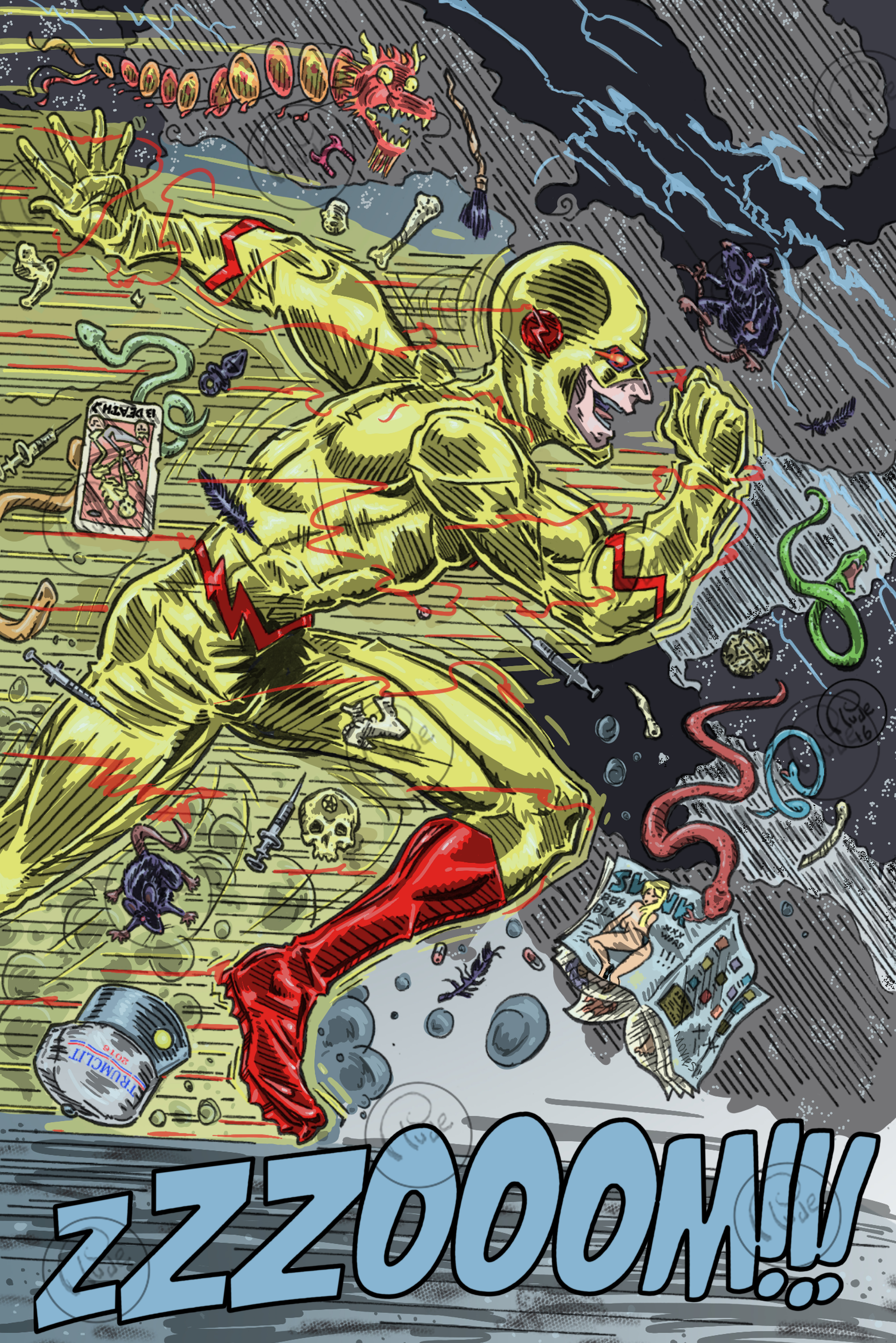 trying to get my portfolio up to scratch so i decided to do some random comic book pages and i started off with doing a colored piece of reverse flash coming through the speed force to battle the flash.