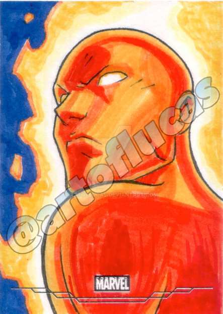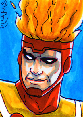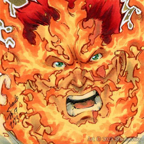 Johnny Storm, aka Human Torch from Marvel Fantastic 4 comics on orange postitRelated content