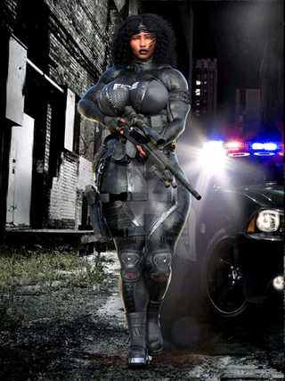The big gal looks like she had to skip lunch because of an emergency call... so the bad guys are in real trouble now!