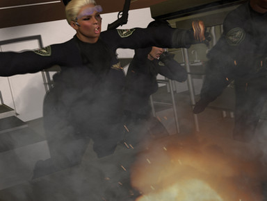 The fugitive watched the hefty Staff Sergeant run a finger between her utility belt and her belly overhang. It was a nervous, subconscious gesture. Like she connected her excess with a post military life that had grown comfortable. The fugitive looked at her ring finger. She wore no wedding ring on duty but there was a white strip on her tanned finger where the ring normally sat. He could see Tollerson’s emotions kicking in. A trained Shock Trooper her instinct was to point her plasma gun into the hiding place and blow him to hell. But she knew it was a 50/50 chance she’d live. Tollerson wasn’t a coward and no way was she going to order the other sergeant to do her dirty work. So it was her. She was thinking about what she had to lose. She wasn't a Shock Trooper any more; she was a civilian cop with a family back home.