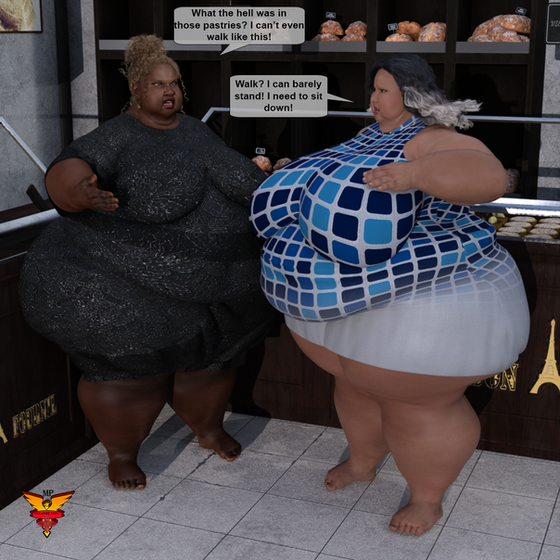 Both Gemma and Karen blushed at that comment. Hauling her butt up Gemma wiggle waddled around the counter and stepped out of the staff area into the bank foyer. Karen waddled on behind her. Taking the box Gemma looked inside. There were six of the giant sweet treats.