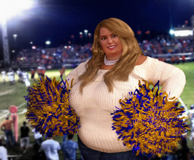 Down in Saran Skyport, Issa Express employee Kristal Treloar had parked her fat buns behind the console and was doing her best to look busy. Her swollen curves were squeezed into her form fitting uniform and she had a packed to bursting look. The sand storm was making all flights late and the gathering group of passengers were getting more and more frustrated. Pretending to look at her console's screen Kristal was looking at Facebook on her personal i-pad in between taking a slurp of her Big Gulp blueberry smoothie. She'd just returned from a long weekend up in Issa City to watch the Surge MLP powerball game and was checking out response to the photo's she'd posted on Facebook. General consensus was she looked "awesome" in her replica Johnny Martinez jersey.