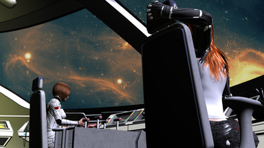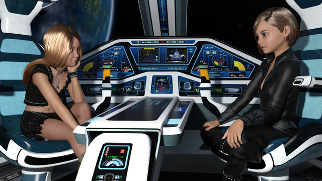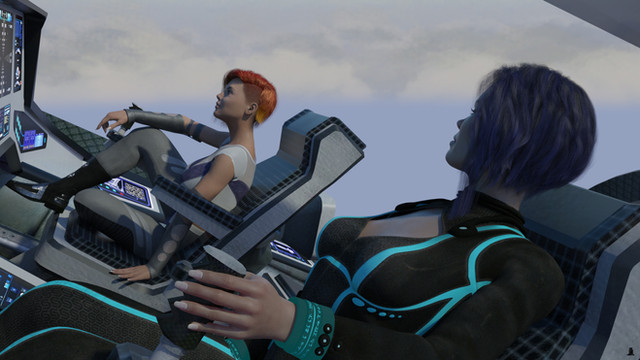 I short story here with no major drama - just the First Officer of a Kane Express shuttlestar flight and her growing second officer. I've been doing alot of renders with the awesome Shuttlestar model so thought I'd add a short story in to the mix.Kane Express flight EX1007 banked gently as it cruised around Kane Alpha just above the planets atmosphere. The Shuttlestar short haul flight had cleared the sky space around Logan Spaceport and was in cruise. First officer Jackie O’Hara rested back in her seat and looked across at her second officer, Kasey Karkorian.