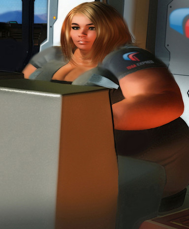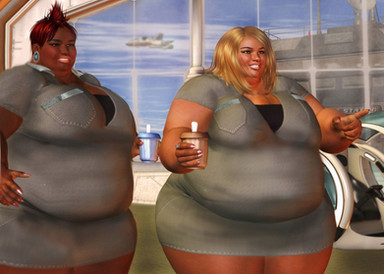 Jackie watched her second officer haul herself out of her seat, squeeze past, open the cockpit door and step through into the passenger cabin. She couldn’t stop herself checking out that ass. A big thick butt that still had some tone from Kasey’s army days but that was growing softer and plumper by the month. Jackie thought about some of the really hot, fat Corp girls who flew for Kane Express. Soon her buddy KK would be sporting that look. Five minutes passed and the door opened and Kasey returned with two coffee’s.