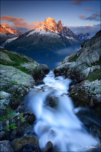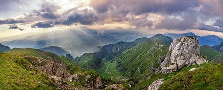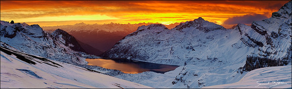 Sunbeam lighting the flancs of Pointe de Bellevue in the Swiss Alps.Related content