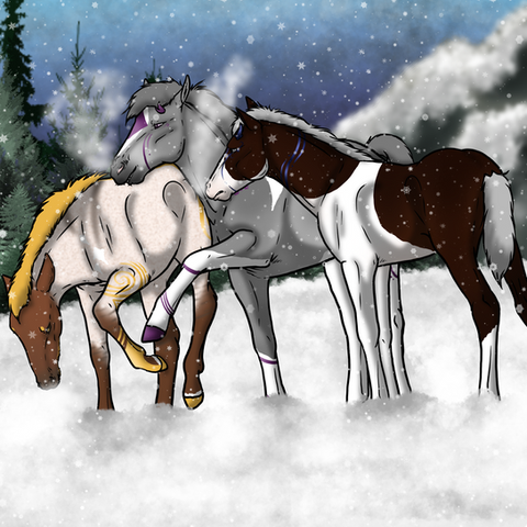 Ice visited Tomboy often, occasionally grooming her over the fence. Tomboy was beginning to think maybe she could trust this mare. Vicen noticed the two mares often close to each other between the fence and figured why not let Ice join her. The two mares got along quite well.
