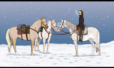 Damien couldn't think of a better show to give his fathers legacy some notice. Hauk and 2012 wore brown sashes, a colour that represents Bushidou. Damien's father passed away due to an illness when Damien was 14. Since then hes taken over the ranch and continued on with his fathers dreams. Hauk and 2012 are two of Damien's best horse. And with Hauk being a grand foal of his fathers favorite horse Feenix, they where perfect. 2012 couldn't help but show his fierce personality a little, Hauk knew, each moment his hooves would hit the snow beneath him he carries the wait of his grand sire and Damian's father with him.