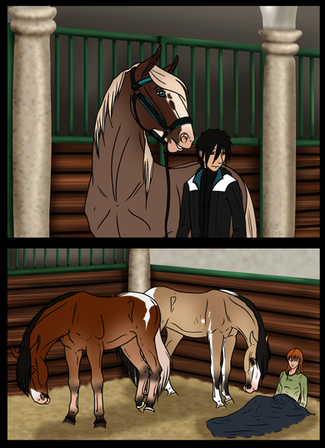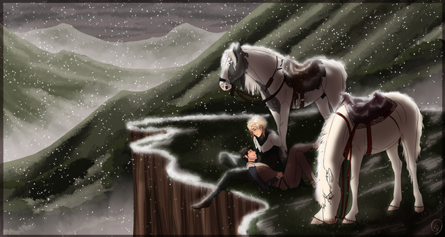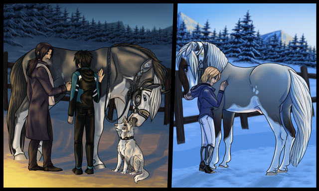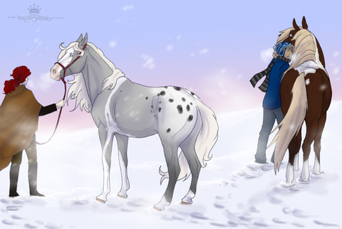 After warming up a bit Vicen needed a moment away from them. He headed away from the fire and company heading to see Aylen. She nickered softly as he approached. He threw the blanket he had around him over her. She was all he really cared about. He moved closer to her hugging her softly as she pulled him closer with her head. "Aylen.. im sorry.. " He mumbled softly still feeling like her falling was all his fault. He held her for a long moment, just to be close to her. after a moment he made sure to check her over and make sure she wasn't wet or cold still. He returned to the group, of course leaving his blanket on her.. much to the dislike of Sayer.