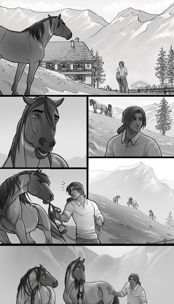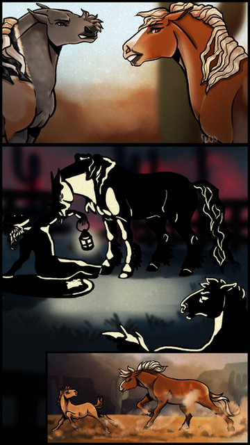 Thorne spent some time in the field with Bala and her herd. as the days went on she grew far more accustom to him being there. Even growing a little curious of him. After a little bit Thorne arranged for a little experiment. Taking Ru And Liliom out to the indoor arena. As the girls were led away Bala was a little confused wondering where they were going. Thorne stood in her way of fallowing them. "Wanna fallow? you gotta trust me." He whispered softly. Bala looked at him a moment.. before slowly walking towards him. She even lowered her head slightly for him to slide a little lead rope over her head. Now they could really grow there bond together.