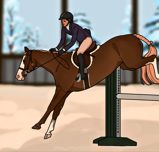 Nykki Was happy to get Vassy out in some show jumping work. Her idea of Riding attire wasss a little questionable.. No mater how many times Vicen would politely ask her to dress a little more appropriate. Regardless her training was going well.