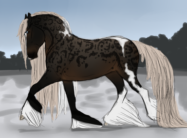 Personality: Sweet, little shy but happy mare. Shes more of a follower then a leader and happily followes who ever is leading her. Shes a mare that a small child could lead dispite her giant size. She works well but definetly needs a soft hand other wise her lovely sparkles would quickly fade away.