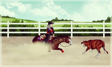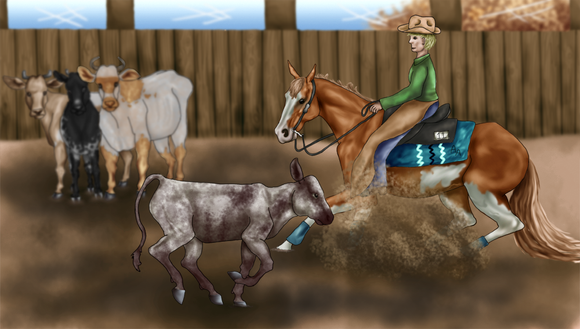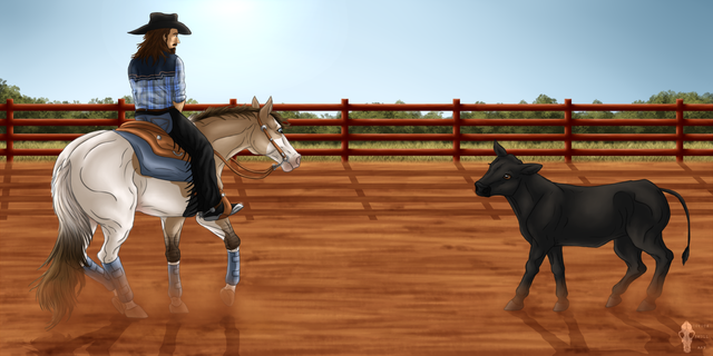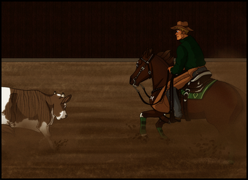 It was finally Madocs turn to show what he and lari had.. or really what Lari had.. The eyed the cattle.. Doons of course.. were crafty.. they eyed the team waiting for them to make a move. It all happens quick enough.. Soon enough a rare silver steer was cut from the herd..Madoc lowered his hand to Lari's neck and let her at him. He was for sure just along for the ride. This steer was sure spicy but Lari danced hoof to hoof with him. she really was meant for this, loving every second. For a moment Madoc forgot were they were.. maybe he was even have some fun himself.