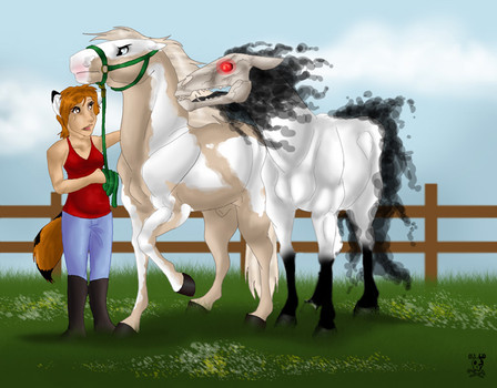 “Hey boy you’re really sweet but im not in the mood for this...” Sontar said. “That’s probably why he did that. He can tell you’re upset and wanted to cheer you up. I mean come on man you know Tech is out of the danger zone, all he needs is a little more rest and he will be fine. In the mean time we can train Asterisk, im sure this boy is a better training partner then Grim.” Zaos said taking the stallions lead rope. “ O.o um what do you mean Zaos?” Sontar questioned. “ Have you forgotten what breed Asterisk is? You do realize they’re race horses.” Zaos answered. “Ya but I can’t ride a race horse D:” he whined. “Well we can change that.” Zaos said as he walked away. “But-..... crap T^T”
