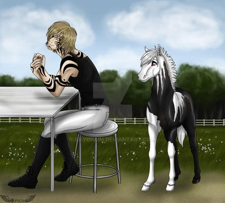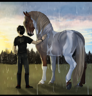 Drannor the main western trainer for DomeIthil was sitting on a rock in the foal pasture, he often did this on his free time. Though he was the trainer, his own horse was still young. Kaji was his name, Drannor always felt good around his foal the two already have a great bond together. Instead of playing with the other foals when ever Drannor was in the field Kaji would always be near him not leaving his side.so yes this as been sitting on my desktop foooor all most a month XD ya lazy me lol