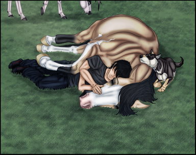 Quick little pic of Adam and Fanny :3She wants to get going and do stuff. Nibbling on his jacket to hurry him xD