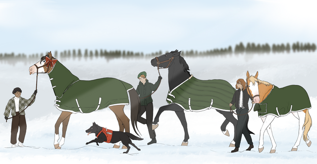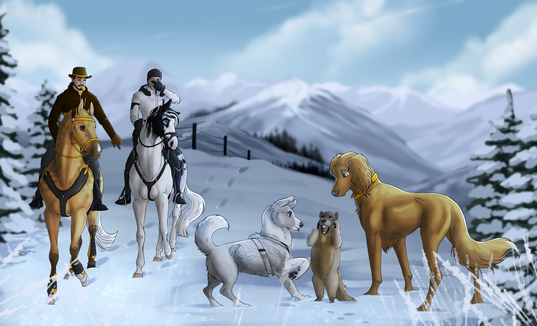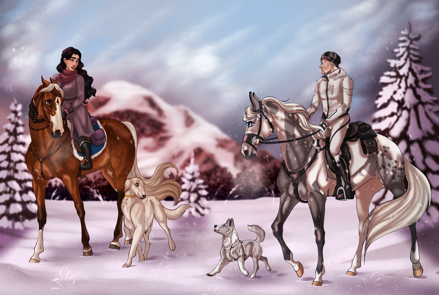 After the little selfie session everyone got together to head off to the cabin. Vicen had book them all one of the largest to accommodate everyone who wanted to come from RM. Luckily as well this one had been set up to accommodate there horses as well. Heading off to the cabin was quite a site. All the Alpesi at Rhed moon were also along for the adventure. And whos to say with how loyal obers were that they wernt just walking a pack of dogs around. Each with there own unique quirks.