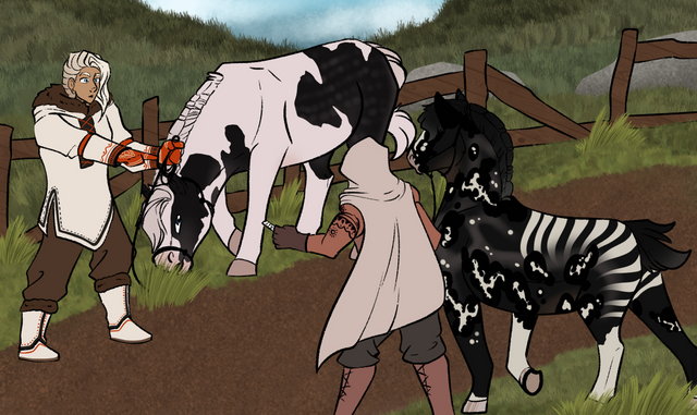 Unlike those who are entering the Olympics the rest of the staff have it pretty easy. The twins deciding to go for a little trail ride. Liliom was really getting use to this place easily accepting the twins. Takaya was happy to have a horse that really accepted him. They happened to pass by the mare field on there little outing as Tomboy for sure noticed them. Takaya had been working really hard with her for over a year. but shes still not quite trusting of him enough to let him rider her. Being passed around from owner to owner can really break an ober down. But.. seeing him.. riding someone else.. and seemingly so happy..Maybe.. things were different here..